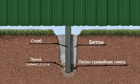 - С бетонными столбами
